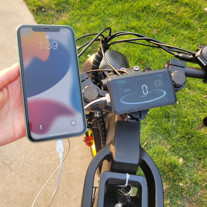 Un port de charge USB 1 Ah est situé sous l'écran du GT20, ce qui vous permet de recharger facilement votre téléphone portable lorsque sa batterie est faible lors de vos sorties à vélo, pour votre sécurité.