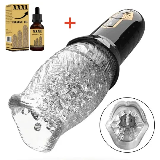 HellofuntoysTM Fully Transparent Vibrating Sucking Voice Male Mechanical Stroker